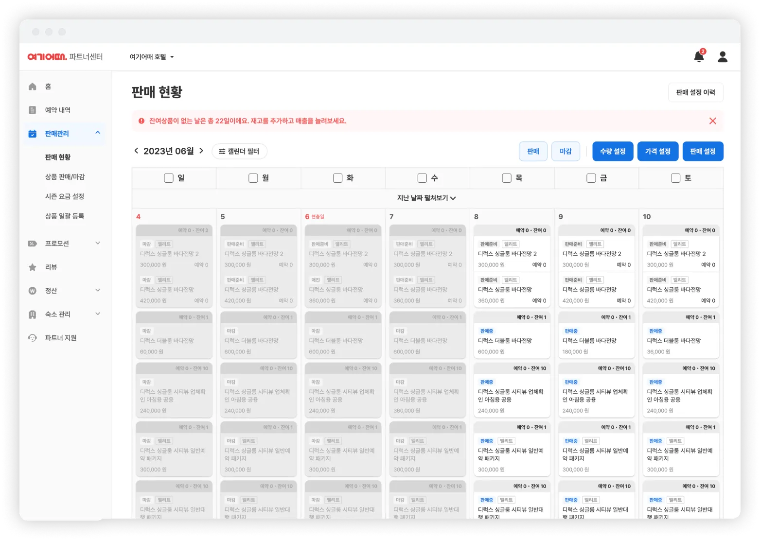 판매 현황 캘린더(PC)